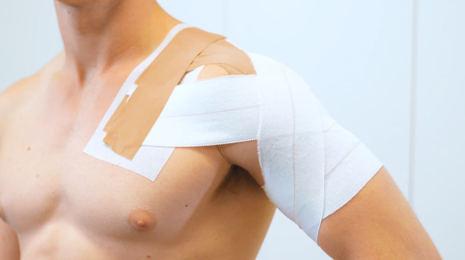 - Wrap over the rigid tape and around the shoulder.