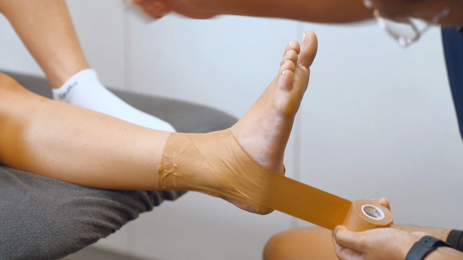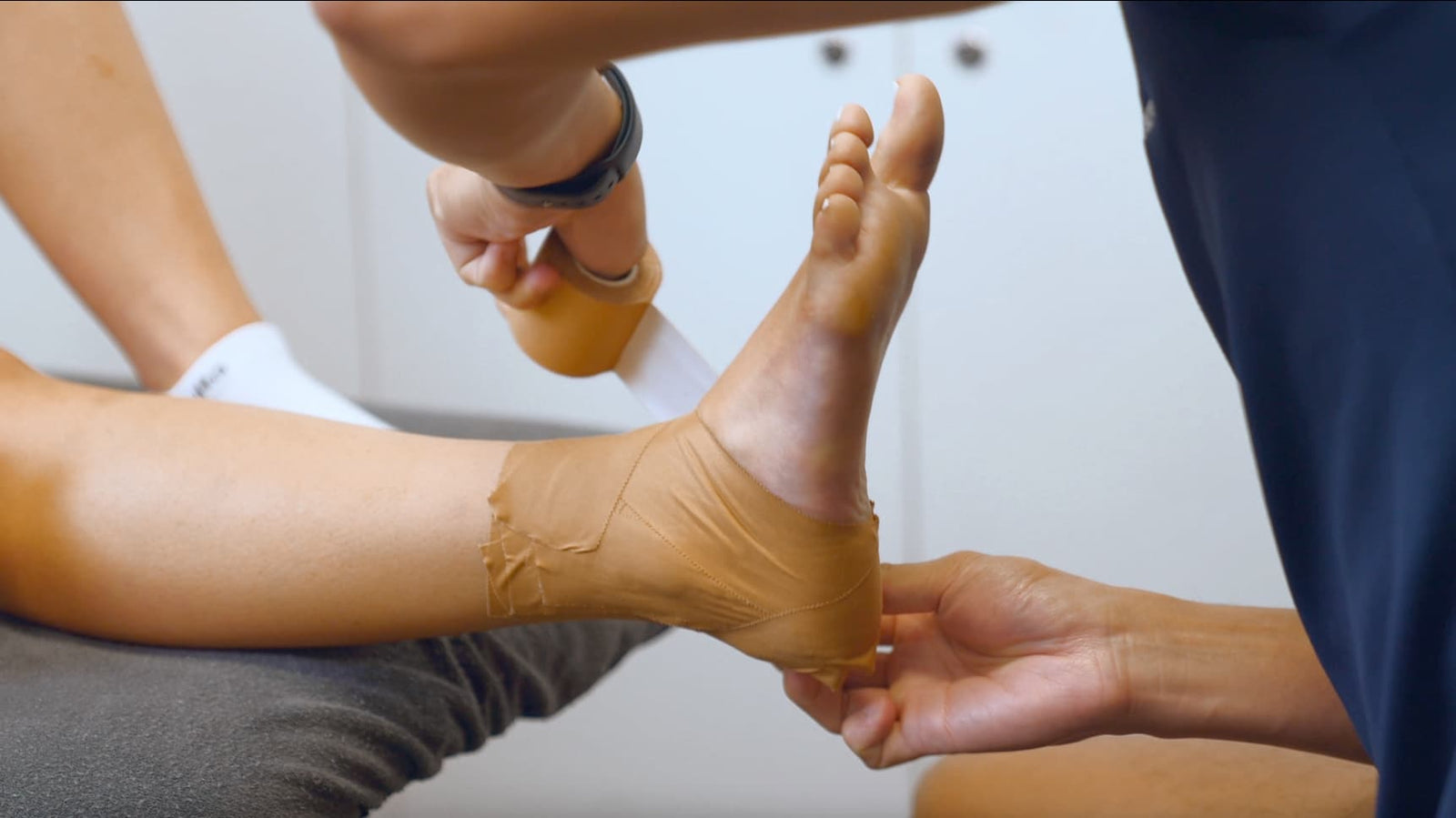 rigid sports tape to reduce risk of re-injury and support return to activity.