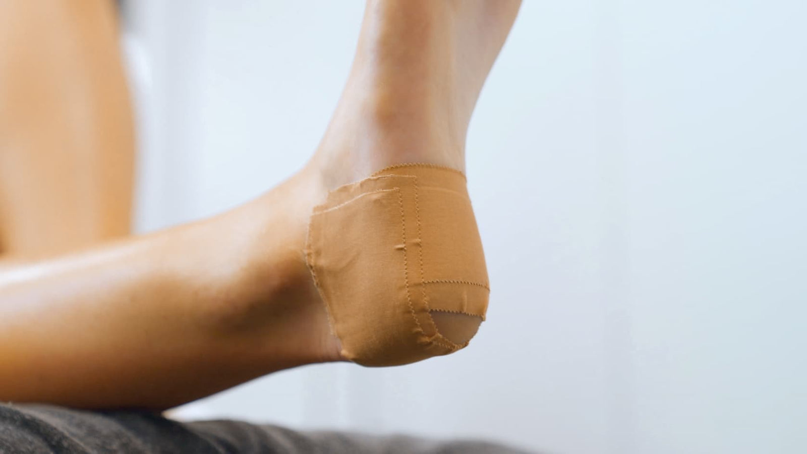 Expose the plantar aspect of the heel and ensure the skin is clean and dry.